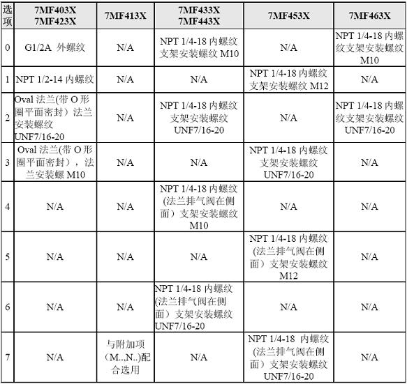注意:7MF453X 和 7MF463X 只可選擇"1"