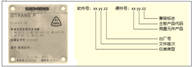 西門子壓力變送器的銘牌另一側為許可證牌上面包含一些關于硬件版號和出廠注冊號等內容的信息。