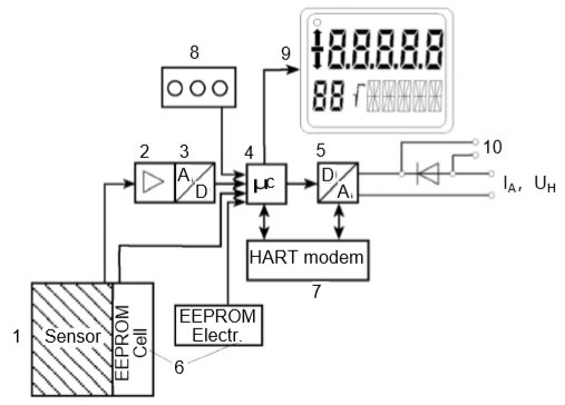 西門子壓力變送器產(chǎn)生的信號(hào)被信號(hào)放大器放大后,經(jīng)模–數(shù)轉(zhuǎn)換器轉(zhuǎn)換成數(shù)字信號(hào)。在微處理器中,經(jīng)線性和溫度校正后,再經(jīng)數(shù)–模轉(zhuǎn)換器(轉(zhuǎn)換成直流4-20mA輸出信號(hào)。一個(gè)二極管電路提供反向極性保護(hù),外部指示(電壓降<0.5v)也可以連接到這個(gè)電路上。涉及測(cè)量元件的電子數(shù)據(jù)和變送器功能參數(shù)數(shù)據(jù)被存貯在兩個(gè)EEPROM 中。 你可以通過3個(gè)輸入調(diào)整鍵直接在測(cè)量點(diǎn)對(duì)西門子壓力變送器進(jìn)行參數(shù)調(diào)整,可以在數(shù)字顯示中讀取測(cè)量結(jié)果、故障信息和工作方式。也可以通過HART調(diào)制解調(diào)器,按照HART協(xié)議進(jìn)行參數(shù)調(diào)整。