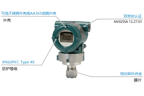 堅固耐用的構造可以幫助您的工廠減少故障。四螺栓保壓設計,DPharp數字傳感器,特氟龍涂層316L不銹鋼法蘭墊圈,ANSI / ISA 12.27.01認證雙重密封 - 所有的設計特點都為延長變送器的使用壽命。