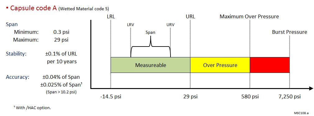 A,B或C膜盒 | 7,250 psi(50 MPa) |